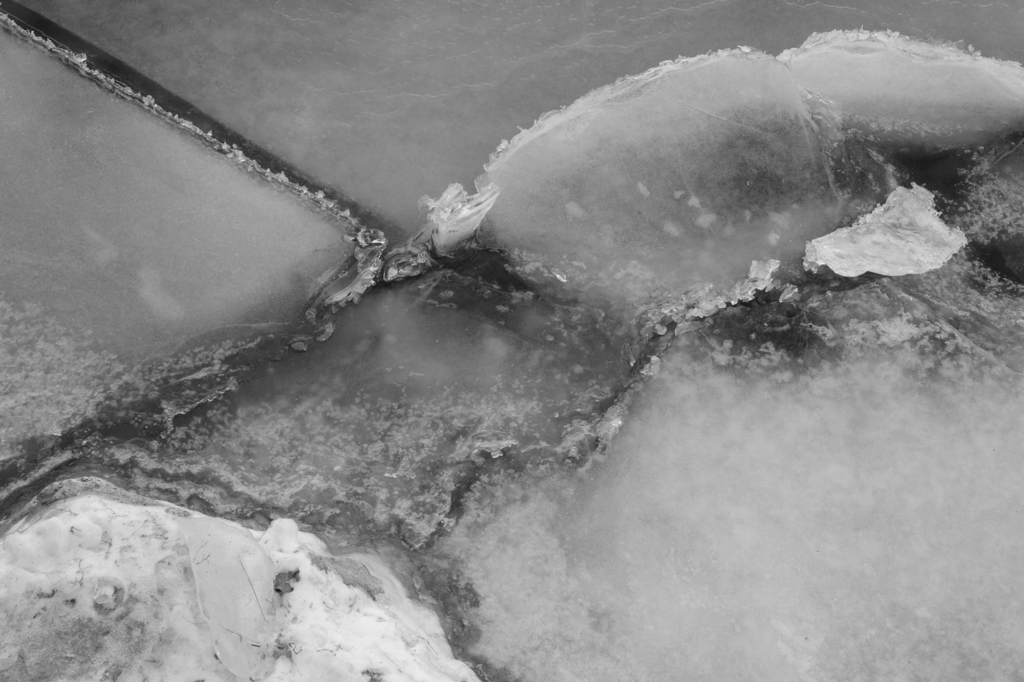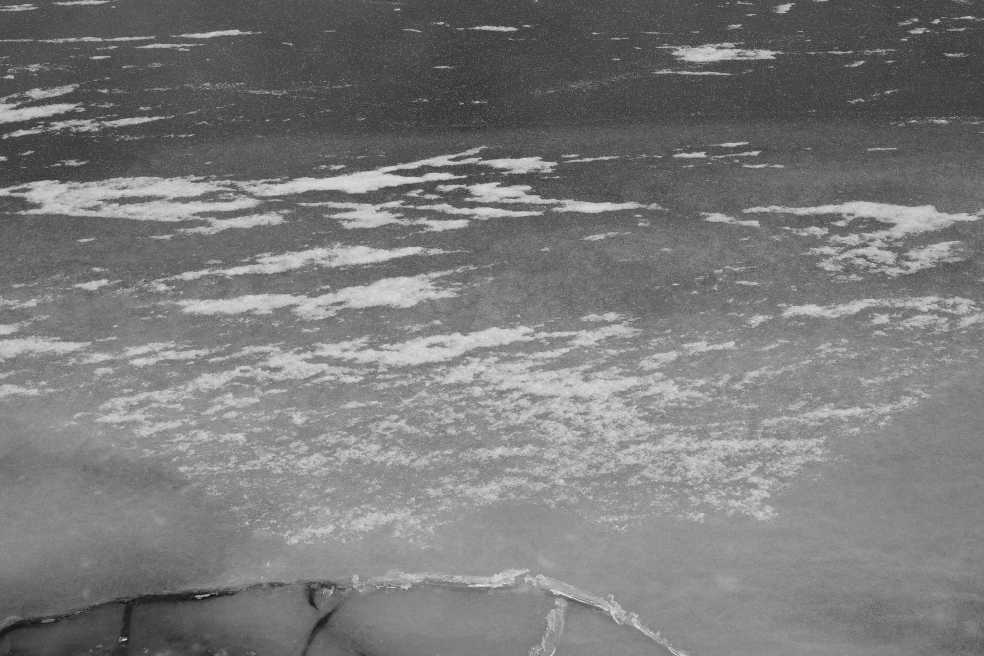 I like the lake in the winter. The ice forms and breaks trapping and releasing things and creating endles temporary patterns and textures. Colours fade into an almost monochrome, and what's there today won't be the same tomorrow. It's a lovely reminder of the fact that change is constant.